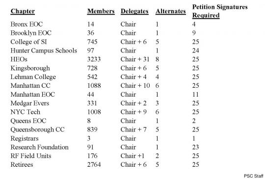 Chapter Officers, Delegates and Alternates to the PSC Delegate Assembly and PSC-CUNY Welfare Fund Advisory Council