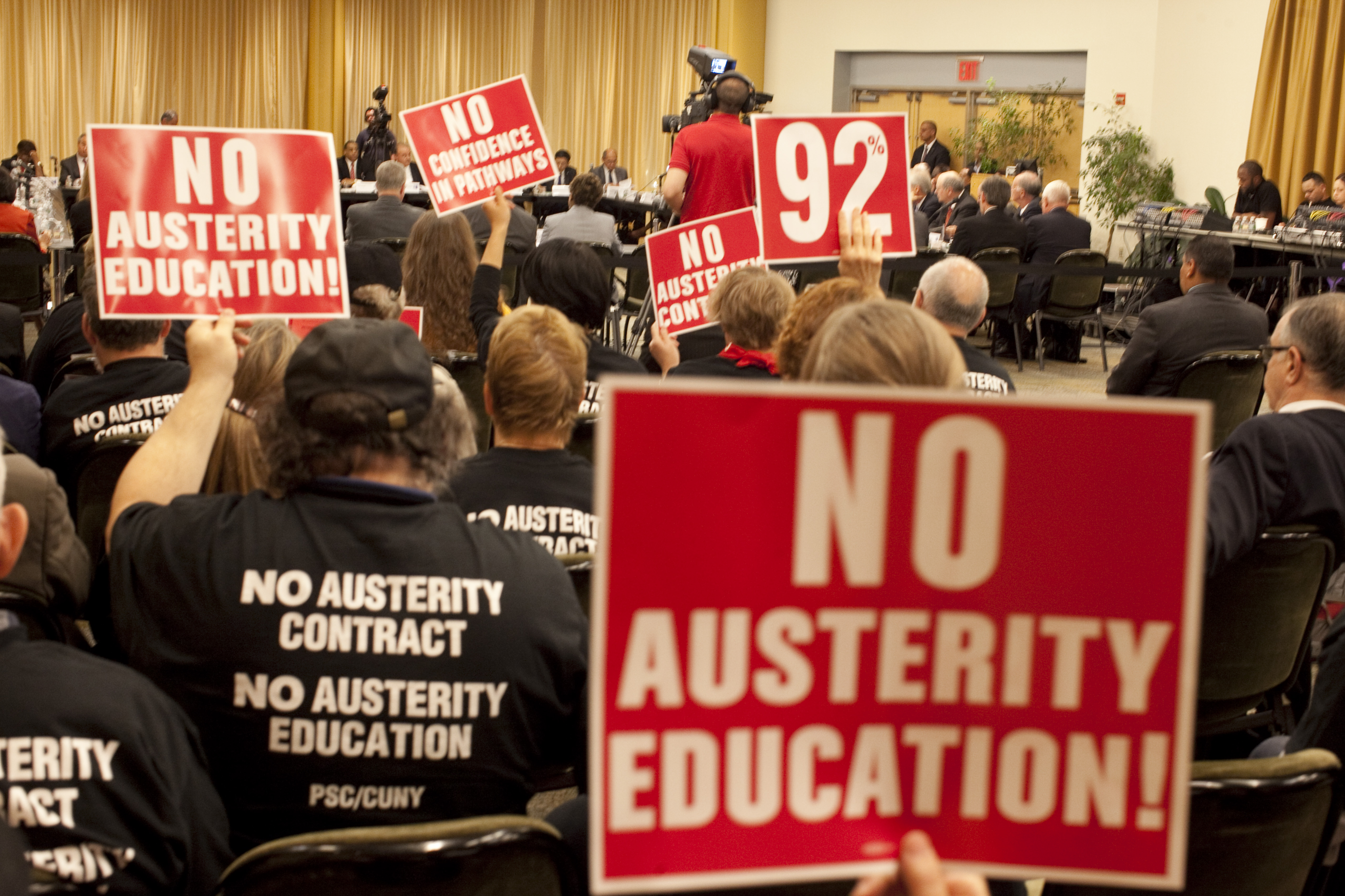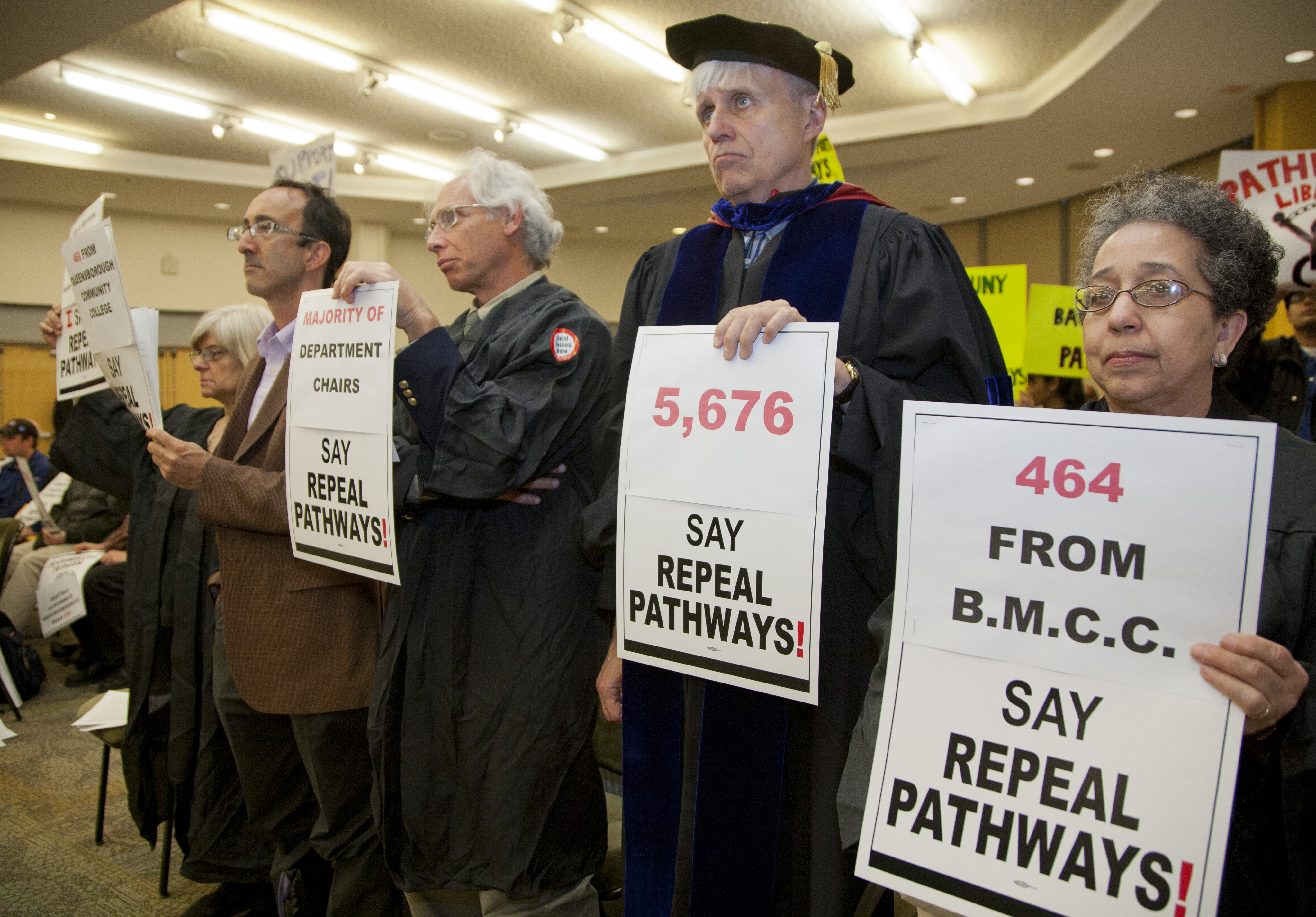 Pathways is a new general education curriculum and transfer policy, established ostensibly to improve student transfer within CUNY. It’s really a narrower, administration-imposed curriculum that seeks to graduate more students, faster, at a lower cost—a curriculum that accommodates to underinvestment. In a CUNY-wide referendum of full-time faculty, 92% voted they had No Confidence in Pathways.