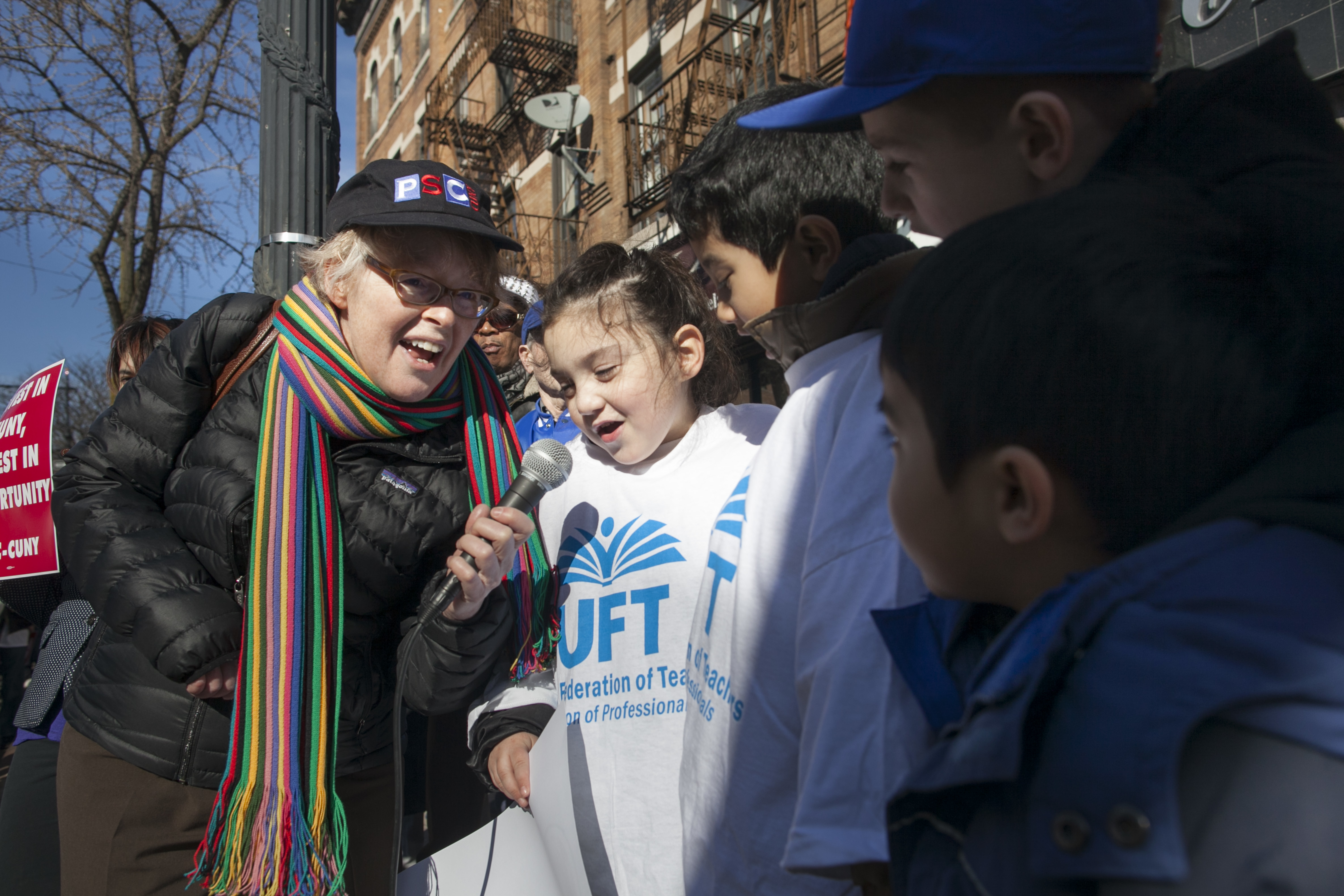 The statewide "Keep New York A State of Mind" campaign continues this week with an op-ed written by President Barbara Bowen featured in the education issue of City & State magazine. In the piece, President Bowen calls on elected leaders to support the Quality Public Higher Education Initiative put forward by NYSUT, PSC and our sister union at SUNY, United University Professions (UUP). The initiative’s main tenets: the establishment of a publicly funded endowment to increase full-time faculty and professional staff; an increase in State funding this year, after years of flat or nearly flat budgets; and significant new investment in student financial aid and opportunity programs. A SUNY-focused news piece about the proposed endowment is also in City & State. Click here for the whole issue.